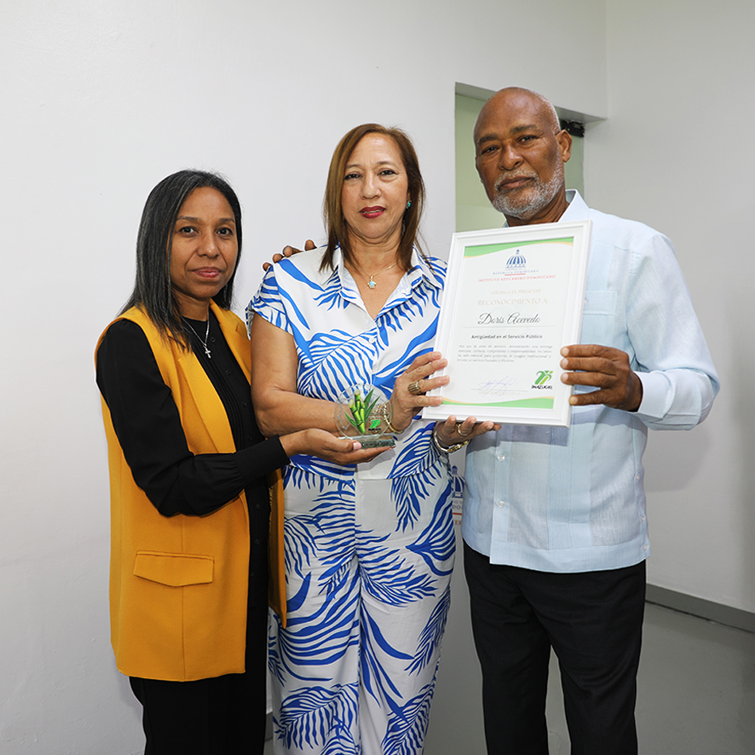Santo Domingo, R.D. – En conmemoración del 61 aniversario del Instituto Azucarero Dominicano (INAZUCAR), la institución realizó un emotivo acto de reconocimiento a seis servidores que cumplen entre 21 y 36 años de entrega y dedicación al servicio público.